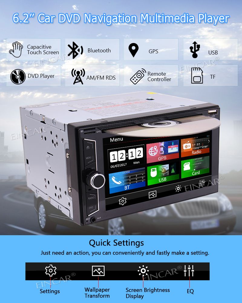 Eincar Online Double 2 Din Bluetooth Car Stereo In Dash Dvd Cd Fm Am Car Radio Digital Media Receiver 6 2 Inch 5 Touch Touchscreen Display Gps Navigation Headunit Usb Sd Aux In Wireless